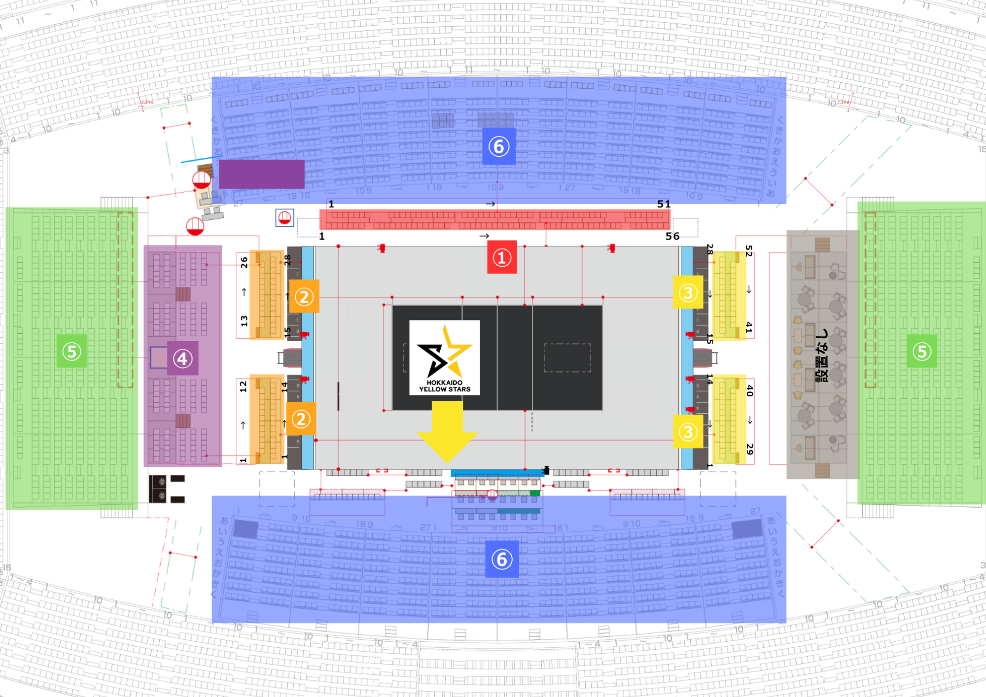 ※ハーフタイムライブは画面左側コートを画面下側(チームベンチ向き)に向いてパフォーマンス予定です。
