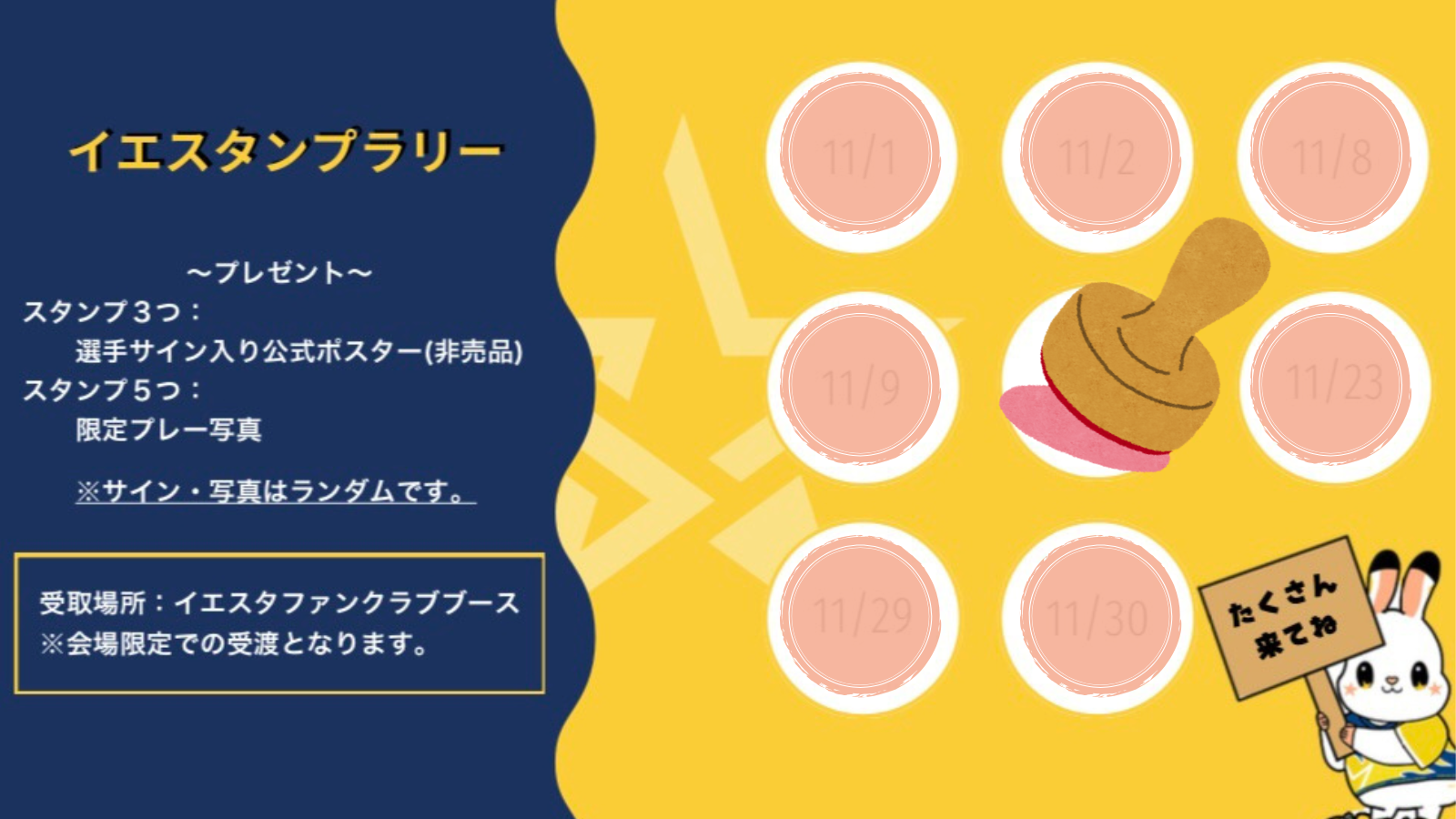 11月のホームゲーム全試合対象のスタンプラリーを行うことが決定いたしました‼
