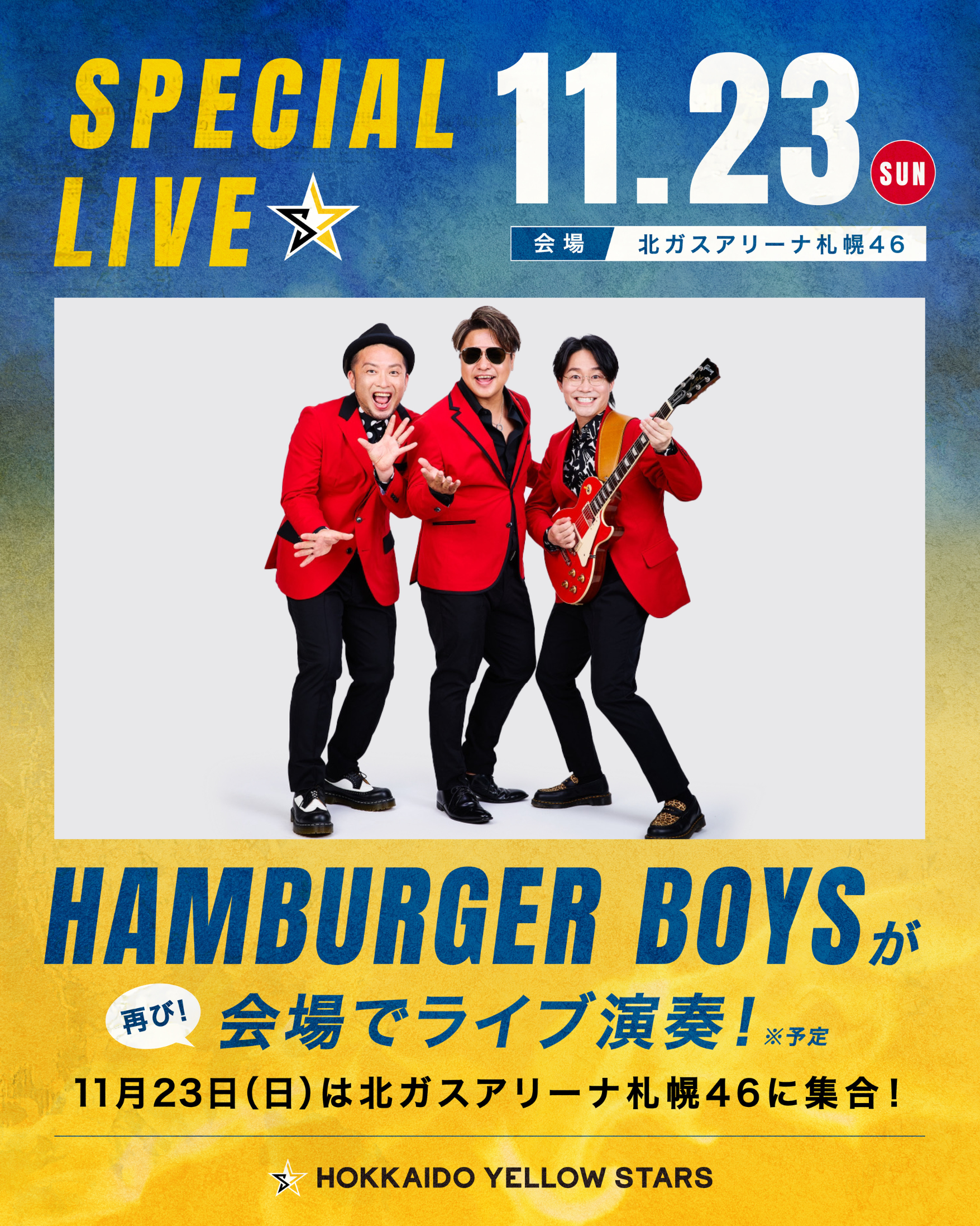 11月8日(土)のホームゲームでは、熱いライブで会場を大いに盛り上げてくださったHAMBURGER BOYSが、再び登場!さらにパワーアップしたステージをお届けします。