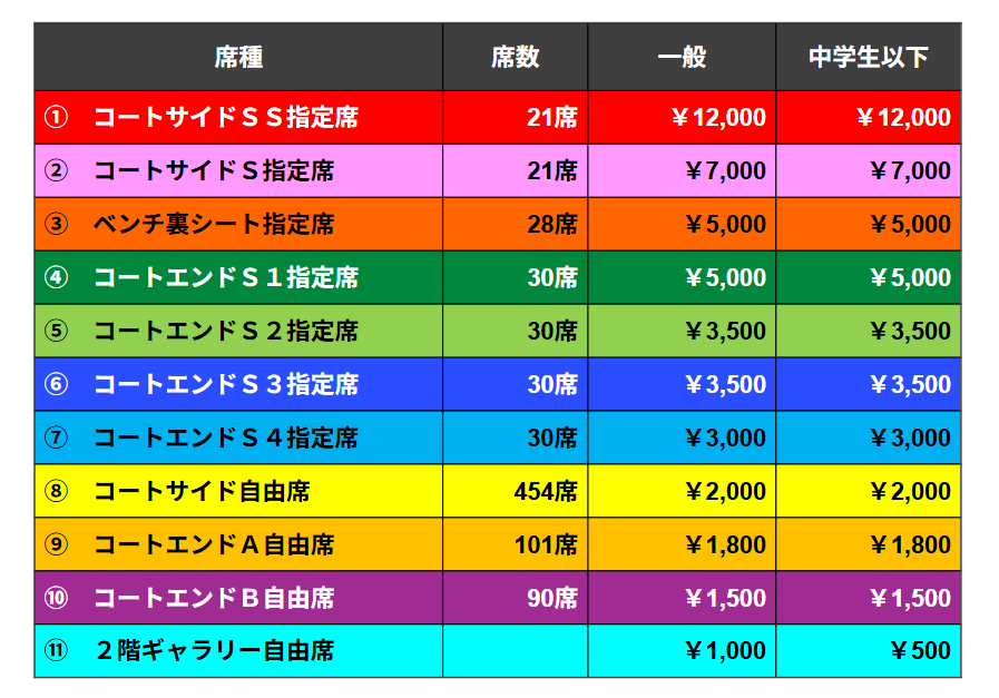 ・⑧〜⑩の1Fアリーナ自由席:1,000円