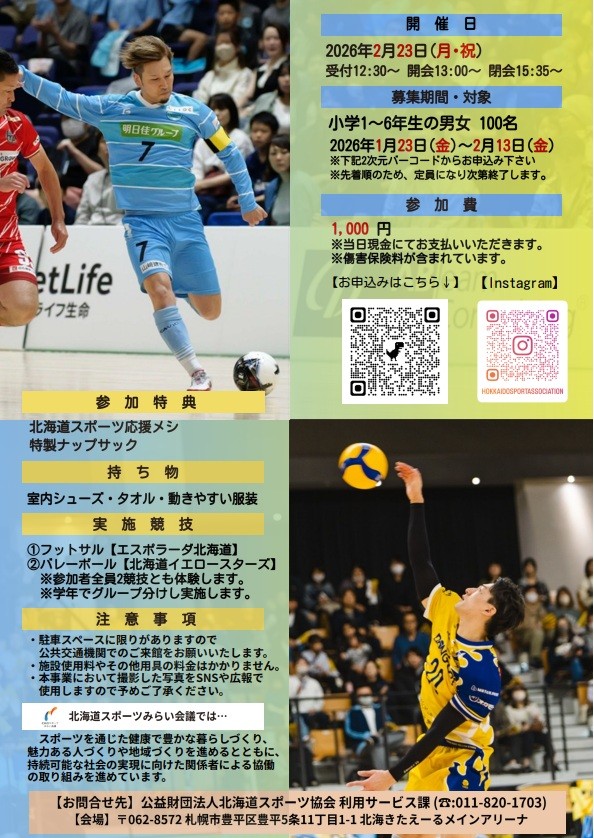 • 2/23 (月・祝)きたえーるトップアスリートチャレンジのお知らせ